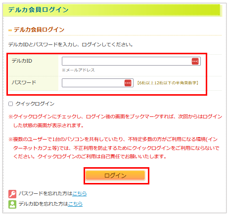 ※デルカのログイン画面が表示されたら、ログインをおこなってください。