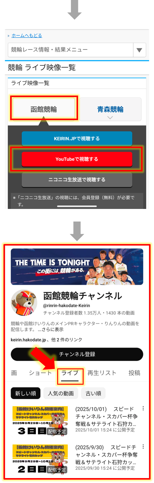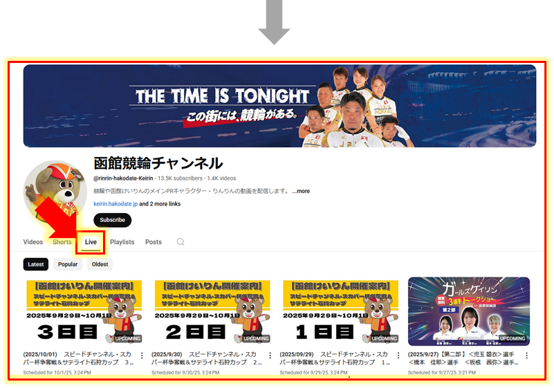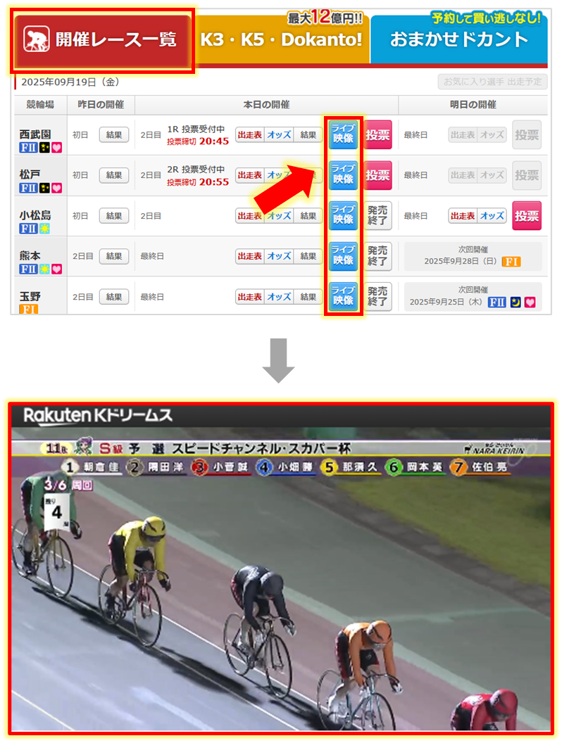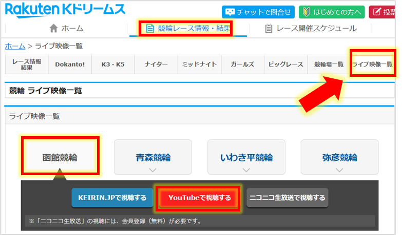 各競輪場のYouTube公式チャンネルのライブ映像などは【ライブ映像一覧】から視聴できます。