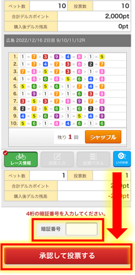 5. 内容を確認し、「暗証番号」を入力し、「承認して投票する」を選択します。